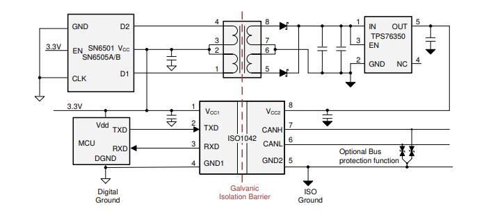 带集成隔离电源的隔离CAN:
